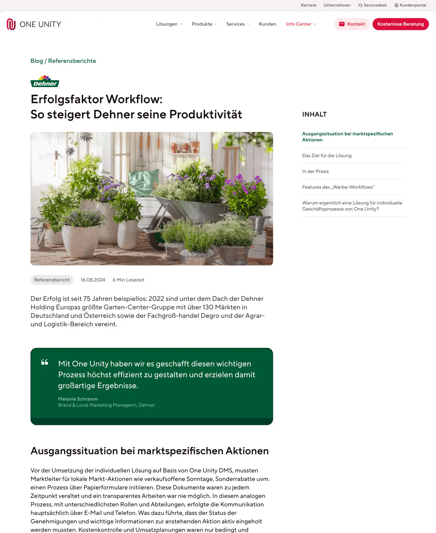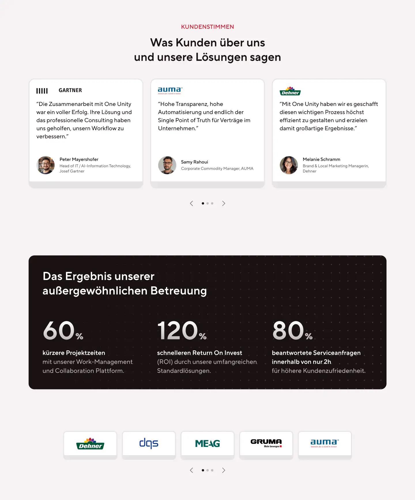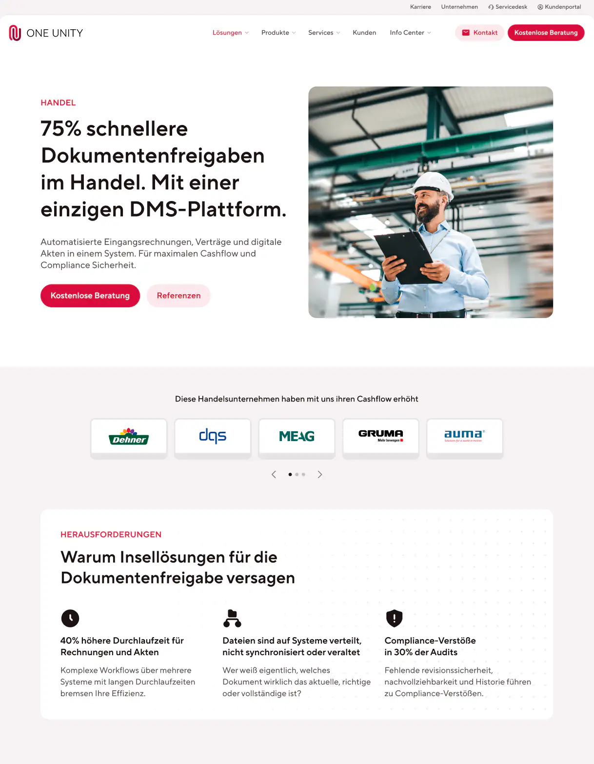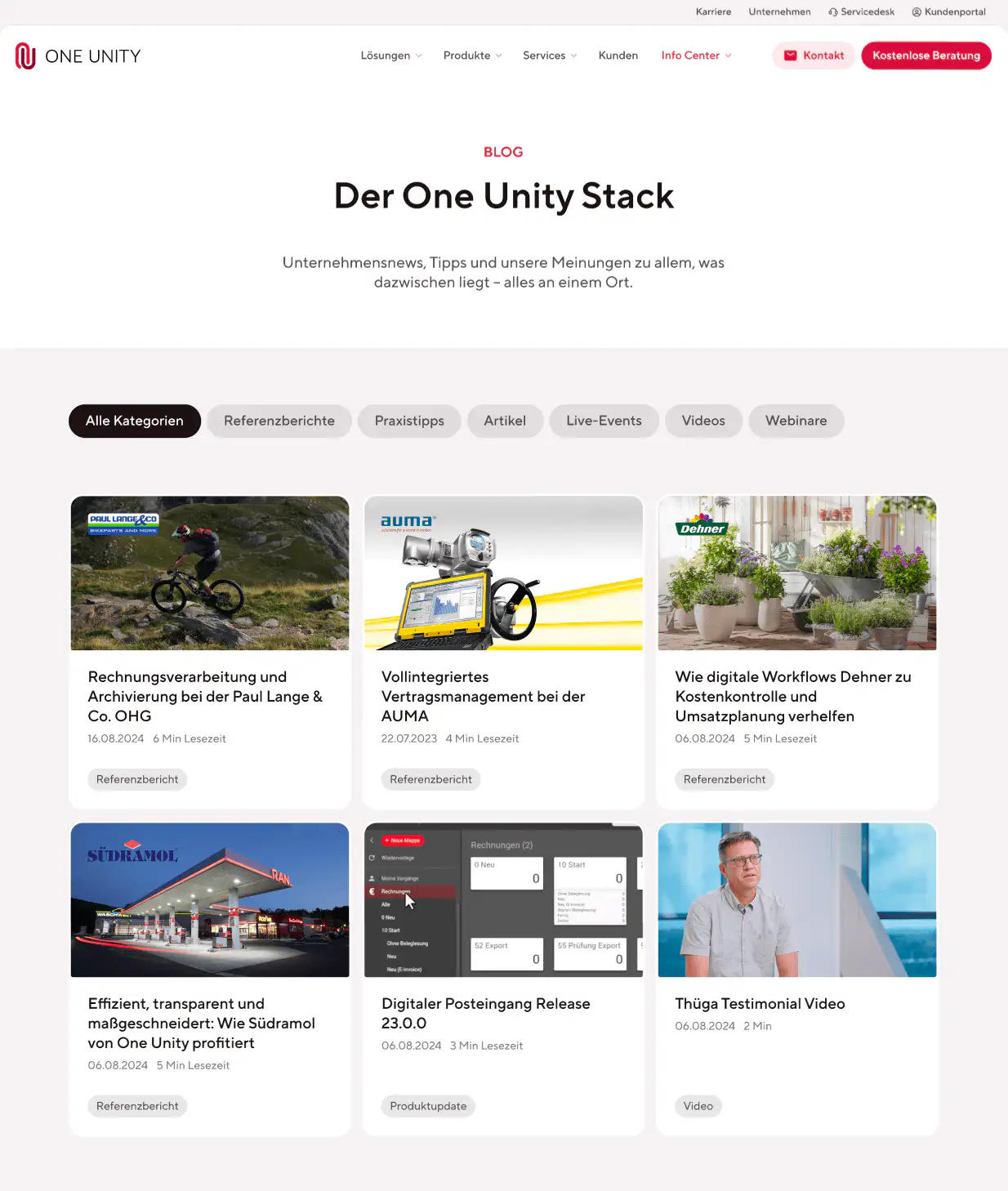 Der Relaunch transformierte die Website von einem Flaschenhals zu einem Marketing Asset mit schneller Content Pipeline. One Unity verfügt nun über eine digitale Infrastruktur, die technologische Exzellenz mit voller operativer Freiheit für das Marketing verbindet.