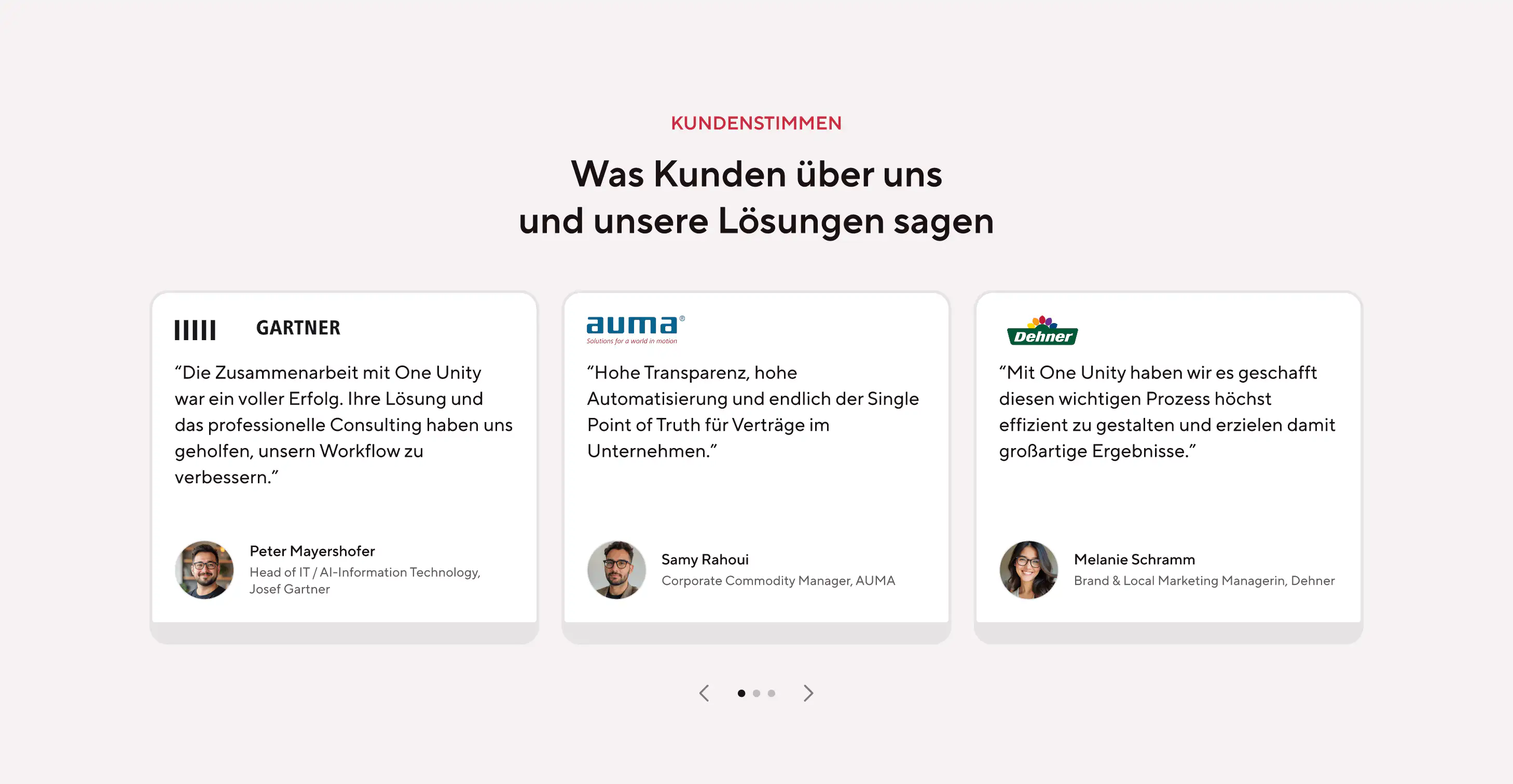 Um Fehl-Anfragen zu minimieren, arbeitete One Unity an einer geschärften Positionierung. Die Inhalte wurden so konzipiert, dass sie nicht mehr nur informiert, sondern aktiv qualifiziert. Gleichzeitig wurde eine Content Pipeline entwickelt, die dem Marketing Team ermöglicht Inhalte schnell zu veröffentlichen.